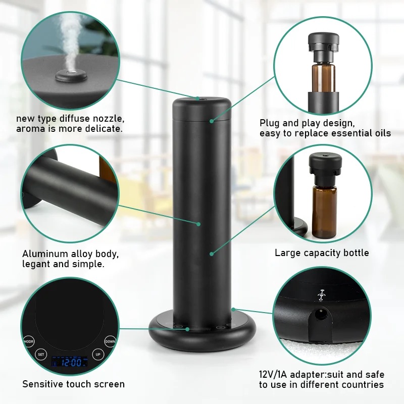 Sensitive Touch Screen: Designed for user-friendly operation, the sensitive touch screen provides an intuitive interface for adjusting settings and controlling the diffuser. Navigate effortlessly through options to tailor the scent experience to your preferences.